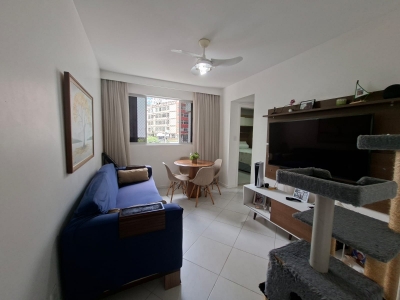 Vendo Excelente apartamento quarto e sala na Barra, Norte / Sul, andar médio, avista mar, 48,75 m2, sala, varanda, quarto, sanitário com lavabo, cozinha americana integrada com área de serviço, 1 vaga de garagem. O apartamento está reformado, finamente decorado, lindoooo!!!! tem piso em porcelanato fosco em cor neutra, rebaixamento em gesso com iluminação embutida, revestimentos decorativos em madeira, papel de parede, grande quantidade de armários planejados de excelente qualidade, pronto para morar com móveis, eletrodomésticos e utensílios. O condomínio tem infraestrutura com piscina com deck molhado, Academia, Lounge para eventos, bar com churrasqueira, portaria 24 hs, elevadores, localização privilegiada no melhor da Barra. OBS.: VALORES E DISPONIBILIDADE PODEM SER ALTERADOS A QUALQUER TEMPO PELOS PROPRIETÁRIOS DO IMÓVEL