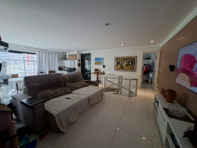 Apartamento de Cobertura Diferenciado!!!!!! 275,88 m2, duplex, linda vista livre de todos os pavimentos, extremamente ventilado, 3 quartos todos suíte, no pavimento de acesso temos sala ampla em dois ambientes com ampla varanda incorporada, sanitário social, duas suítes sendo a master com closet, varanda incorporada, e amplo sanitário com pia dupla, cozinha, área de serviço, sanitário de serviço, escada de acesso ao pavimento superior, onde temos um maravilhoso espaço gourmet, um estar aberto integrado com o gourmet, escritório, lavabo, lindo deck com piscina privativa e vista aberta da cidade, chegando a ver o mar, e uma terceira suíte muito ampla, 2 vagas de garagem e depósito na garagem.